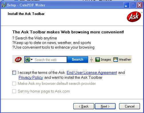 如果不用安裝 Ask Toolbar 取消 所有選擇 然後按 Next |