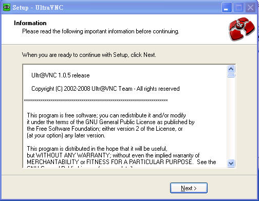 步驟 6. 選擇 “UltraVNC Server Only”後,再按〝NEXT" |