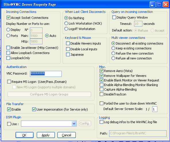 步驟 14. 將VNC Password內的 ******* 全部刪去,然後輸入一個新的密碼 ,可隨意輸入任何密碼 ,因為此密碼將不會被使用 最後按 Apply 然後按 OK |