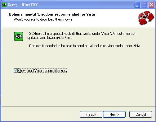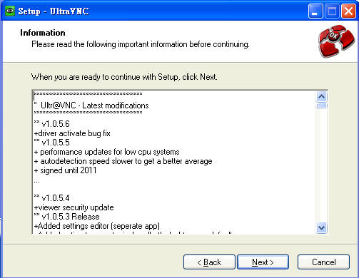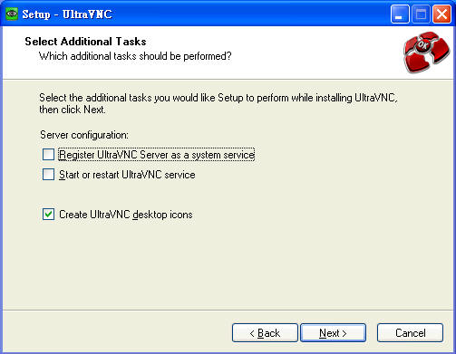 步驟 10. 只選 Create UltraVNC desktop icons 再按 “ Next ” |